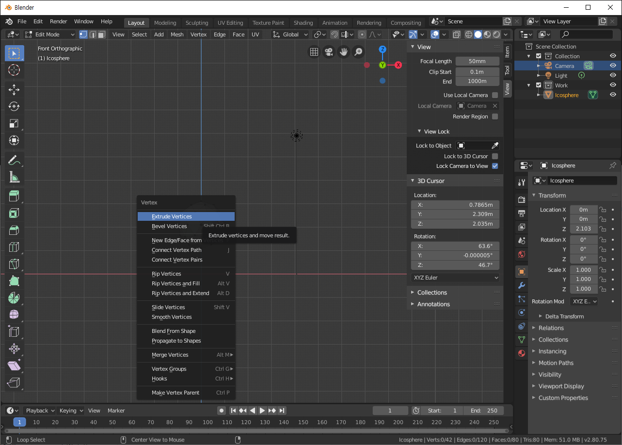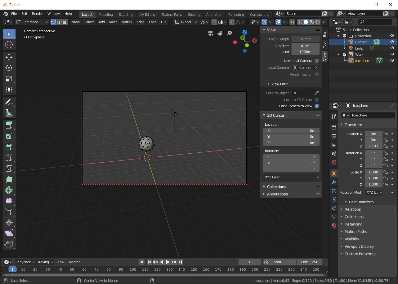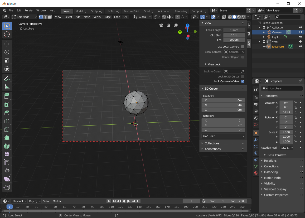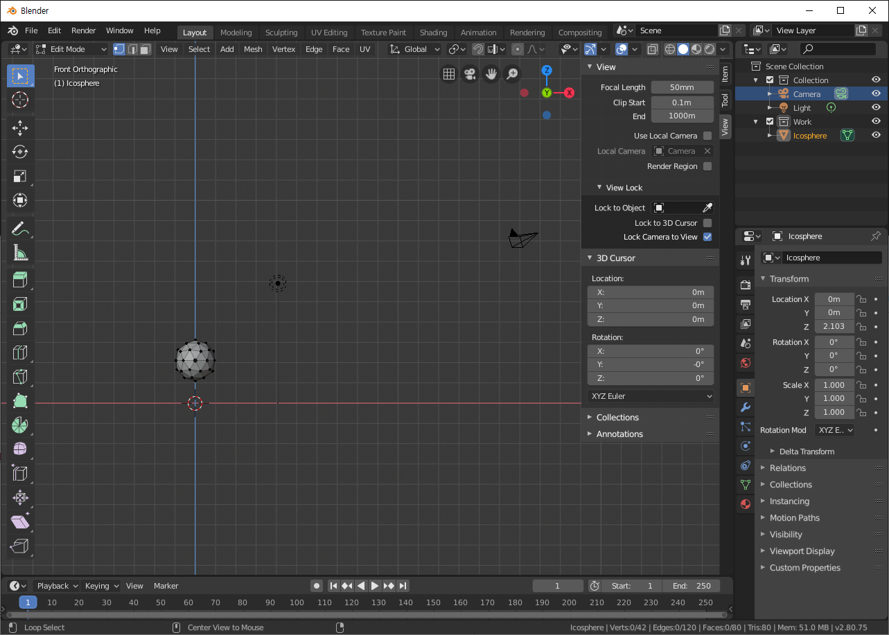Blender Study - 버텍스, 엣지, 페이스, 카메라 단추키 및 조작