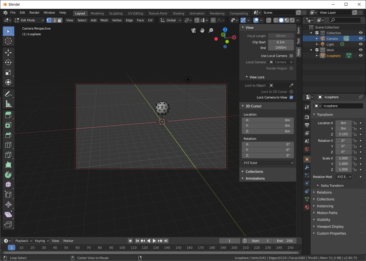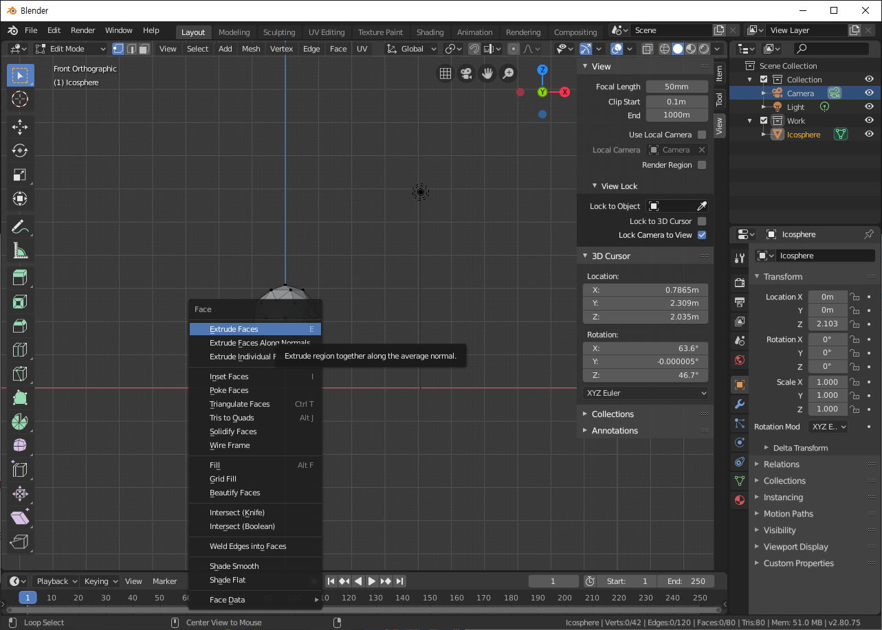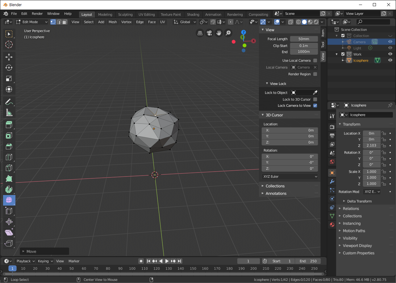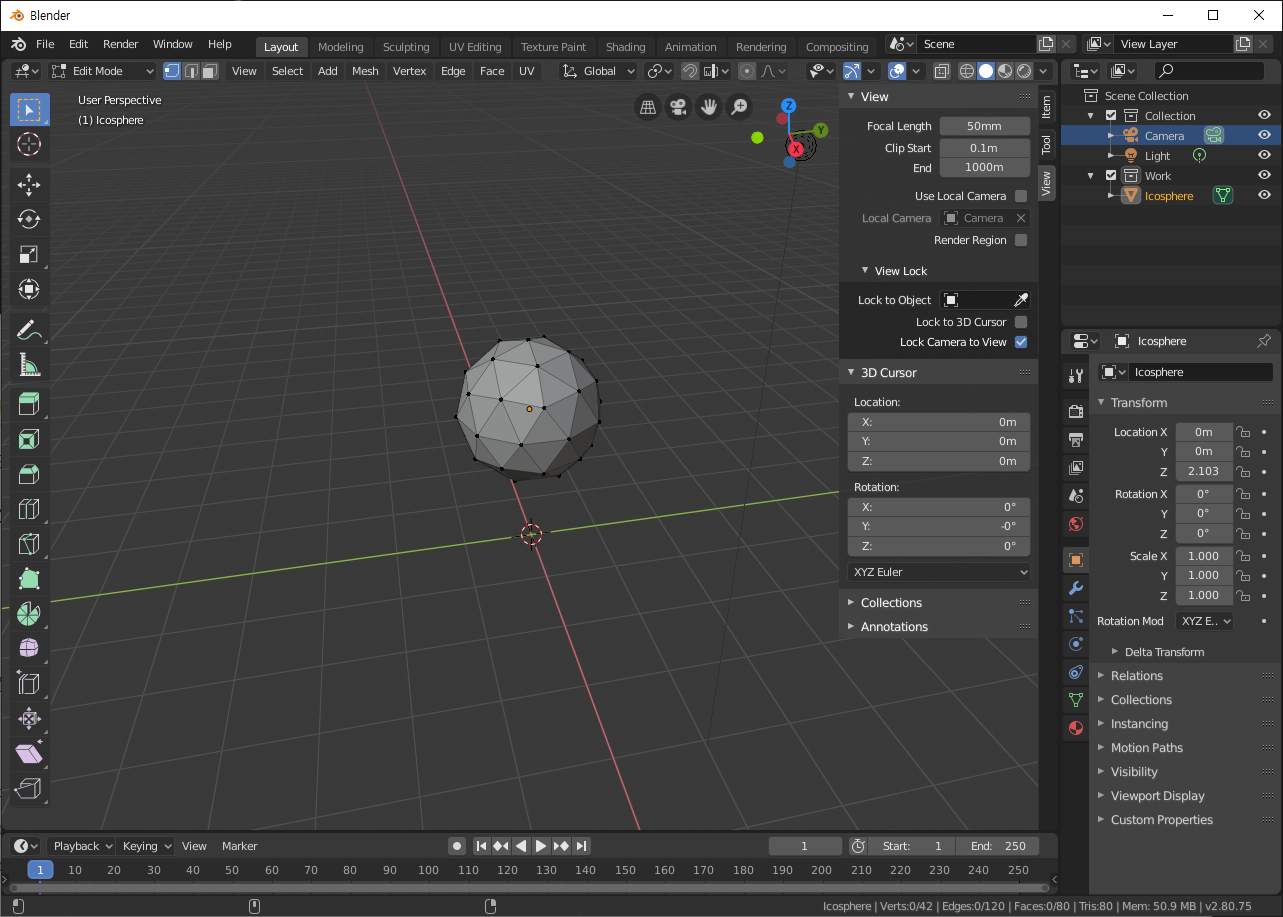 Blender Study - 버텍스, 엣지, 페이스, 카메라 단추키 및 조작