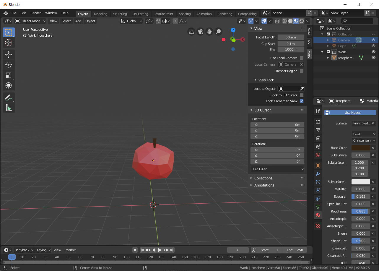 위의 기능을 이용해서 간단히 만들어본 로우폴리 사과