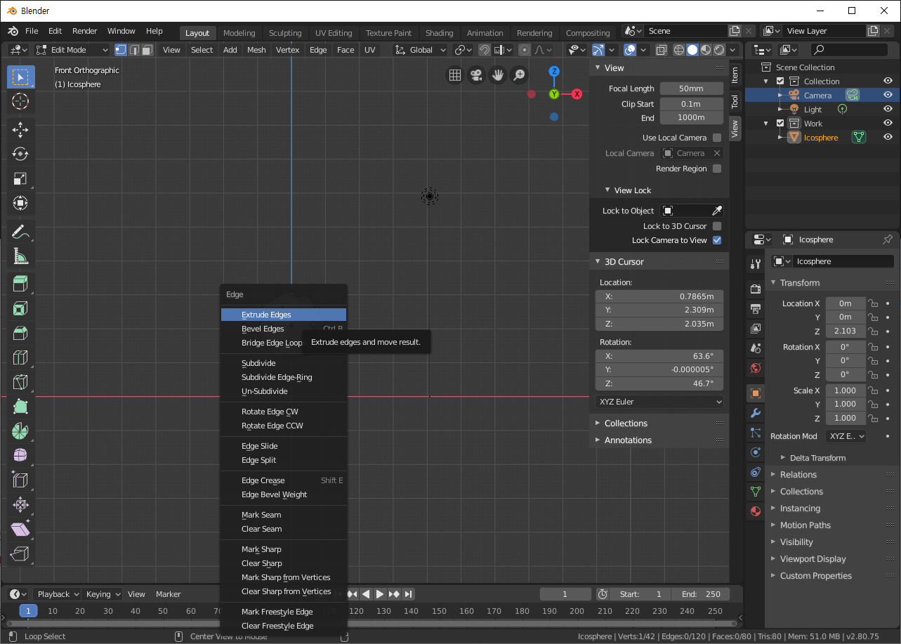 | Edit 모드에서 엣지관련 메뉴 | Ctrl + E | ![]() |