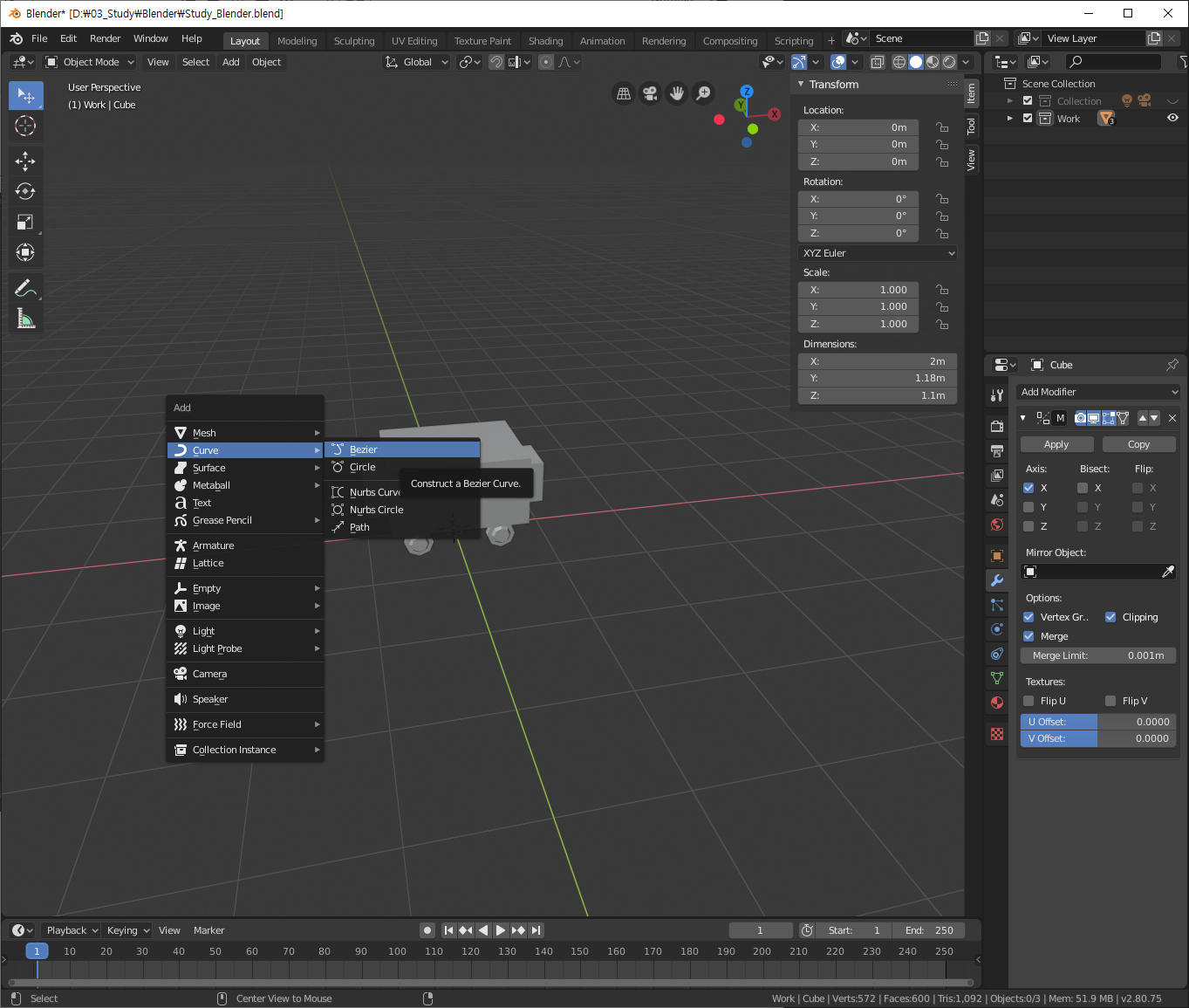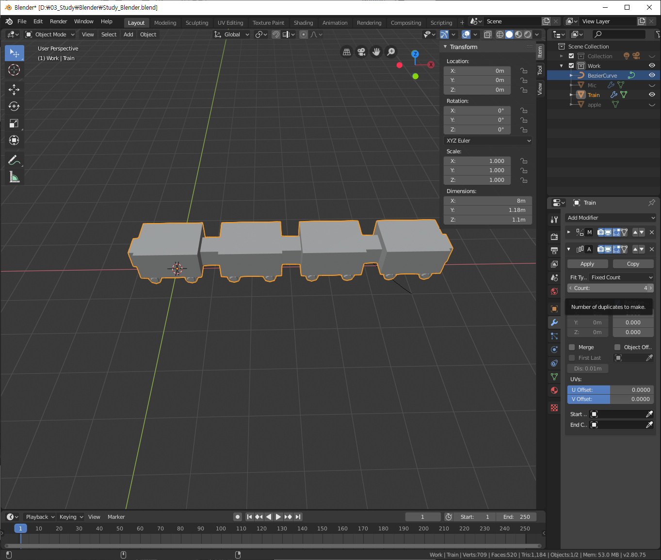 Blender Study - Curve 와 Array Modifier 를 이용한 반복 구성