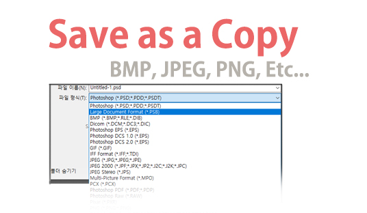 위와 같이 PSD, PSB, TIF 만 가능합니다.