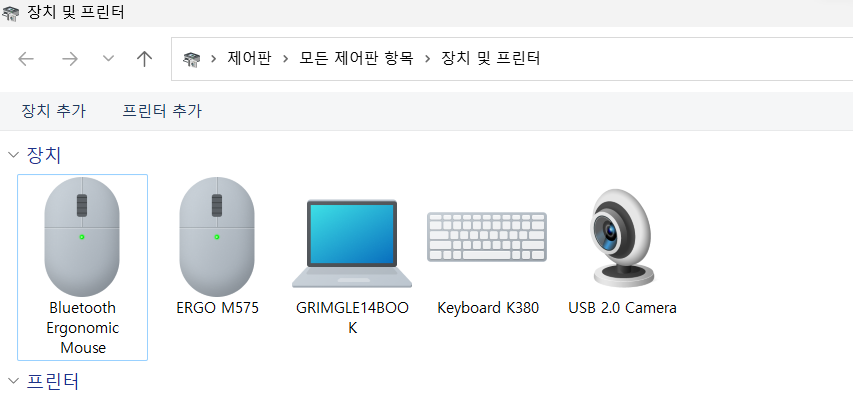 그렇게나 안 보이던 장치 및 프린터 화면으로 넘어갈 수 있습니다!