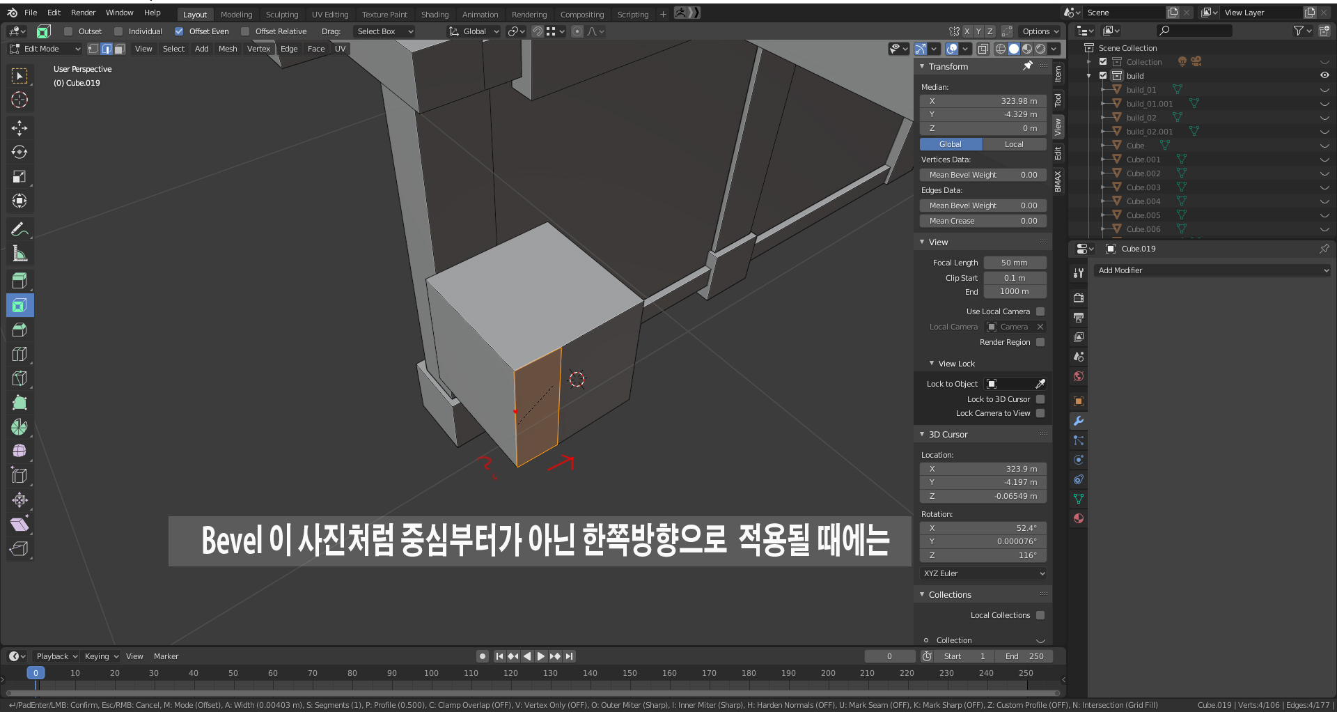 Blender - Bevel 기능이 이상한 방향으로 적용될때 ?